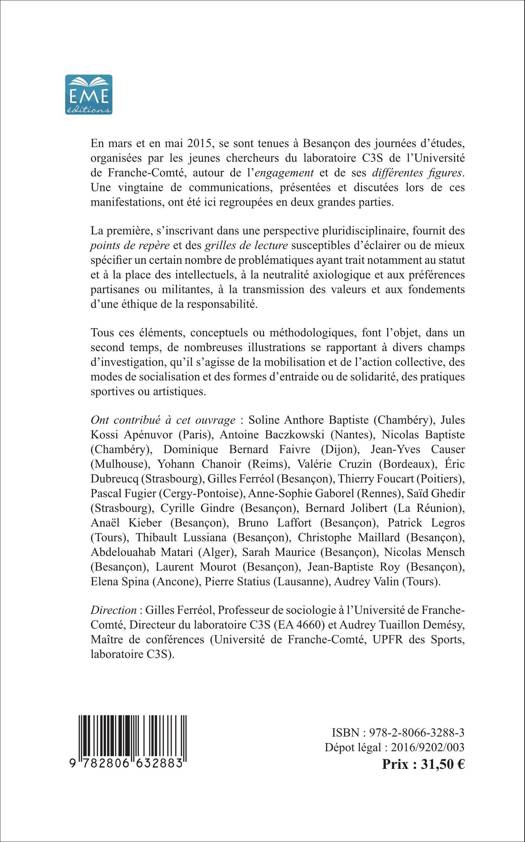 En mars et en mai 2015, se sont tenues à Besançon des journées d'études, organisées par les jeunes chercheurs du laboratoire C3S de l'Université de Franche-Comté, autour de l'engagement et de ses différentes figures. Une vingtaine de communications, présentées et discutées lors de ces manifestations, ont été ici regroupées en deux grandes parties.