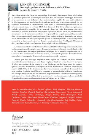 La Chine est susceptible de devenir la première puissance économique mondiale : aucun continent n'échappe désormais à son influence. Comment interpréter l'écart entre les proclamations rassurantes sur le caractère pacifique et responsable de sa puissance, et la poursuite d'un réarmement massif, qui pousse Pékin à bousculer un statu quo régional qui ne la satisfait plus et se déclarer prête à recourir à la force armée dans les disputes territoriales si on l'y obligeait ? Cet ouvrage collectif offre une analyse de la stratégie de la Chine de la fin de Guerre froide au tournant des 2015-2016