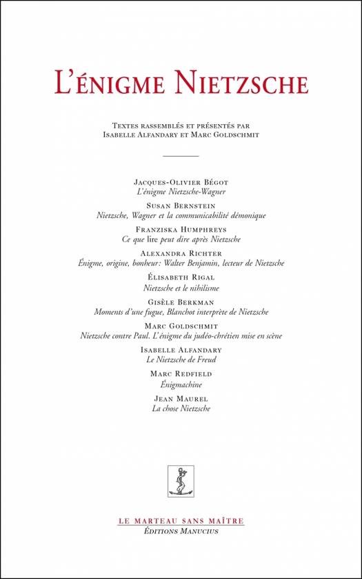 Où est passée la pensée de Nietzsche aujourd'hui, qu'est-elle devenue? Le siècle entamé semble si peu «nietzschéen», aux antipodes de ses avancées et de ses audaces, que l'inactualité de sa pensée peut être le signe d'une promesse d'avenir. Dans cet ouvrage, nous entendons interroger l'héritage nietzschéen ou la pluralité contradictoire des lectures que Nietzsche a suscitées au long du XXe siècle: qu'il s'agisse d'influences explicitement reconnues ou de «l'angoisse d'influence», pour reprendre l'expression d'Harold Bloom, qui s'est manifestée dans de nombreuses œuvres postérieures. Le rapport inédit que le texte nietzschéen inaugure entre la pensée et la vie, la critique et le soupçon qu'il insinue irrémédiablement dans l'édifice métaphysique et ses concepts cardinaux d'Etre, de Vérité, de Morale et de Conscience ne sont pas restés sans effets sur les générations de penseurs et de créateurs qui l'ont suivi. Pour inventer une tout autre philosophie, libérée des erreurs et du mépris de la chair, de l'ignorance de la musique et de la littérature, Nietzsche a mis son corps, sa vie et sa pensée en scène et à l'épreuve de la folie d'un athéisme radical. Il représente à plus d'un titre, aujourd'hui comme hier, une énigme porteuse d'avenir.