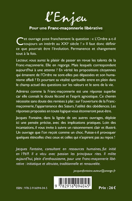 Lecteur, vous aurez le plaisir de passer en revue les talents de la Franc-maçonnerie. Elle en regorge. Mais lesquels correspondent aujourd'hui à une attente? En vérité les propositions citoyennes qui émanent de l'Ordre ne sont-elles pas dépassées et son humanisme affadi? Et pourtant sa vitalité spirituelle entre en plein dans le champ actuel des questions sur les valeurs et le sens de la vie.