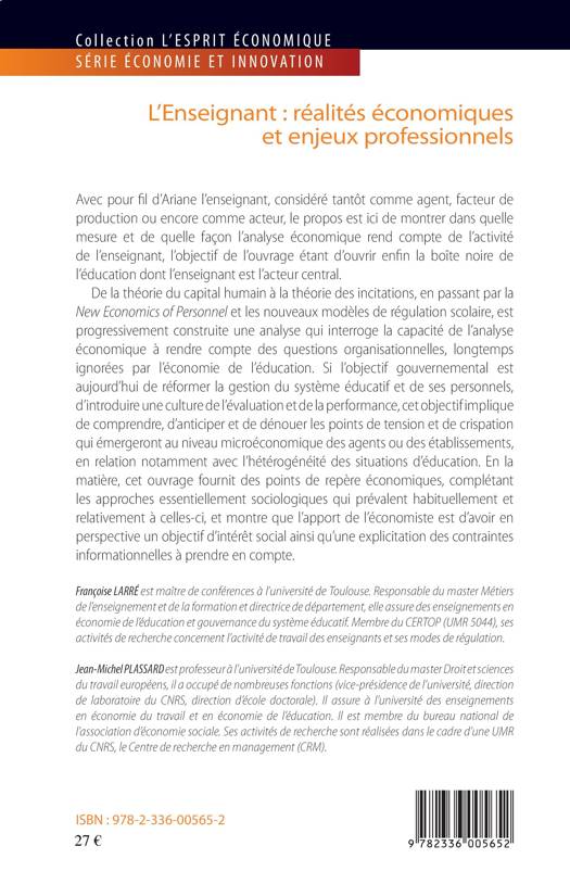 Dans quelle mesure et de quelle façon l'analyse économique rend-elle compte de l'activité de l'enseignant ? De la théorie du capital humain à la théorie des incitations en passant par la New Economics of Personnel et les nouveaux modèles de régulation scolaire, voici une analyse qui interroge la capacité de l'analyse économique à rendre compte des questions organisationnelles, longtemps ignorées par l'économie de l'éducation.