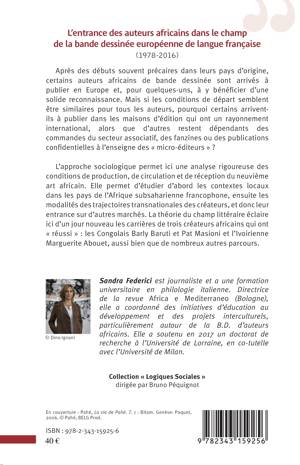 Après des débuts souvent précaires dans leurs pays d'origine, certains auteurs africains de bande dessinée sont arrivés à publier en Europe et, pour quelques-uns, à y bénéficier d'une solide reconnaissance. Mais si les conditions de départ semblent être similaires pour tous les auteurs, pourquoi certains arrivent-ils à publier dans les maisons d'édition qui ont un rayonnement international, alors que d'autres restent dépendant des commandes du secteur associatif, des fanzines ou des publications confidentielles à l'enseigne des "micro-éditeurs" ? L'approche sociologique permet ici une analyse rigoureuse des conditions de production, de circulation et de réception du neuvième art africain.