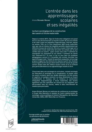 S’inscrivant dans une sociologie du curriculum, croisant sociologie de l’éducation et sociologie de la connaissance, le propos saisit les savoirs scolaires dans leur double dimension, à la fois sociale et cognitive, et souligne comment ces deux dimensions se tissent mutuellement. Si l’analyse met en évidence la construction d’inégalités d’apprentissage à l’école maternelle, elle montre également que des opérations de révision de ces inégalités sont discernables dans les classes, même si elles interviennent de manière plus ponctuelle.