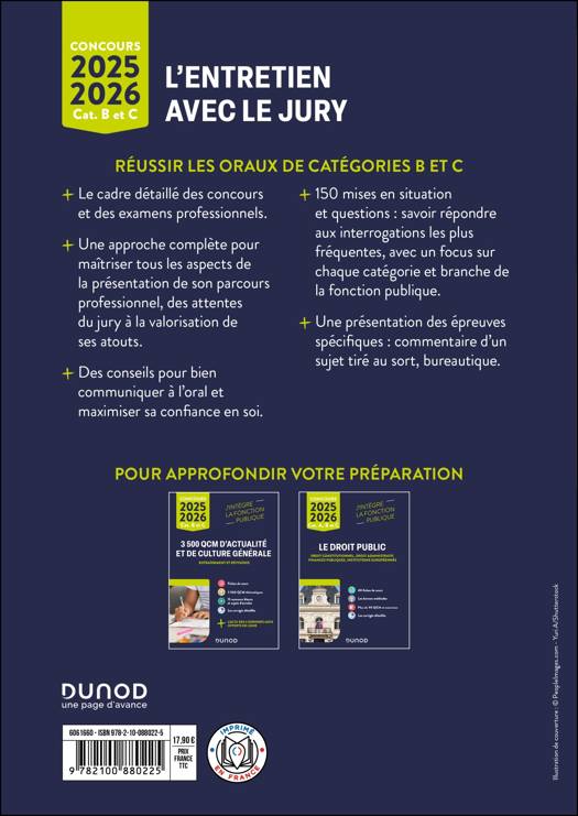 Cet ouvrage propose une préparation complète et un décryptage de l’épreuve ainsi que des attentes du jury. Son approche résolument pratique vous permet de vous entraîner sur une large gamme de questions et de mises en situation les plus courantes, tout en révisant les connaissances nécessaires grâce aux corrigés sous forme de fiches. Des questions « focus », spécifiques à votre branche (État, territoriale, hospitalière) et à votre catégorie (B ou C), sont incluses afin de vous préparer de manière ciblée et efficace selon votre concours.