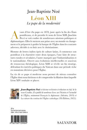 Avant d'être élu pape en 1878, juste après la fin des États pontificaux, et de prendre le nom de Léon XIII, Joachim Pecci se voit confier de nombreuses missions politiques et diplomatiques. Elles le mettent aux prises avec un monde en changement et le préparent à guider la barque de l'Église dans les courants adverses, décidés à en finir avec le christianisme. Homme de lettres italien épris de culture latine, il commence son pontificat à la charnière entre deux époques, l'une faite de structures rurales et séculaires, l'autre marquée par l'industrialisation et le nationalisme. Ouvert aux évolutions intellectuelles et soucieux de renouveau théologique, Léon XIII se révèle un fin stratège, défendant les intérêts politiques du Vatican dans une période riche en mutations décisives pour l'Église. La vie de ce pape si moderne nous permet de mieux connaître l'Église dont nous héritons et de comprendre la filiation dans laquelle Léon XIV souhaite se placer.