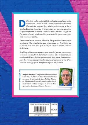 Difficultés scolaires, instabilité, maltraitance de la servante, complexes, Léonie Martin a connu bien des souffrances. Considérée comme « le vilain petit canard » de sa famille, Léonie a donné du fil à retorde à ses parents, ce qui ne l'a pas empêchée de croire à l'amour et de devenir religieuse. Personne n'aurait misé sur elle, pourtant elle pourrait un jour être reconnue sainte. Dans cette lettre ouverte à Léonie, Jacques Gauthier dévoile une jeune fille attachante, aux prises avec ses fragilités, qui se révèle être bien plus que la simple sÅur de Sainte Thérèse de Lisieux. Une biographie encourageante pour tous les jeunes, notamment ceux qui ont souffert dans leur enfance et adolescence, ou confrontés à leurs limites pour trouver leur place. Ils découvriront des ressources spirituelles pour avancer dans la vie. C'est aussi un ouvrage plein d'espérance pour les parents. AUTEUR Jacques Gauthier a été professeur à l'Université Saint Paul d'Ottawa (Canada). Il est l'auteur de 80 ouvrages de spiritualité récompensés par de nombreux prix. Très présent sur les réseaux sociaux, il a créé en 2020 sa propre chaîne Youtube. Spécialiste de sainte Thérèse de Lisieux et auteur de Thérèse Martin, un fabuleux destin, dans la même collection, il se révèle un conteur hors pair de la vie et de la spiritualité de sa soeur Léonie Martin.