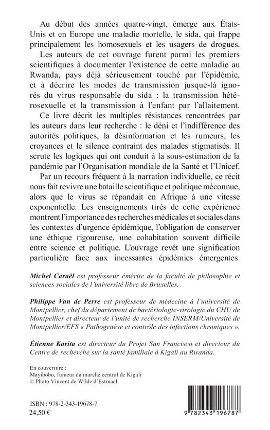 Dès sa reconnaissance aux Etats-Unis en 1981, l'épidémie de sida est interprétée et désignée comme une maladie « gay ». Or, cette épidémie était déjà en plein essor dans les villes d'Afrique centrale. La reconnaissance de cette épidémie hétérosexuelle va prendre plusieurs années. Ce livre nous raconte cette bataille scientifique peu connue. Les auteurs travaillaient au sein d'un « Projet Sida » dans le principal hôpital de Kigali au Rwanda, une ville où 18% des adultes étaient infectés par le VIH dès 1985. Ils font face à de multiples difficultés et à un grand scepticisme de la communauté scientifique. Près d'une dizaine d'années sont perdues dans la lutte contre le sida. Un passé lointain et inimaginable aujourd'hui ? Ou un scénario toujours d'actualité ?