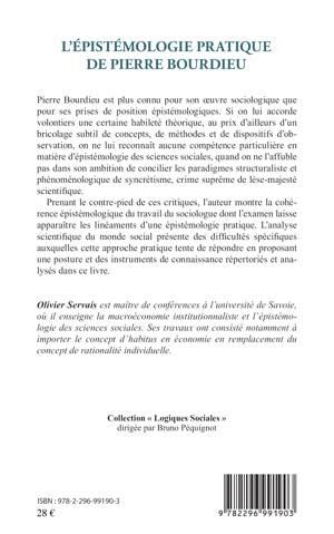 Pierre Bourdieu est plus connu pour son oeuvre sociologique que pour ses prises de position épistémologiques. Si on lui accorde volontiers une certaine habileté théorique, on ne lui reconnaît aucune compétence particulière en matière d'épistémologie des sciences sociales. Prenant le contre-pied de ces critiques, l'auteur montre la cohérence épistémologique du travail du sociologue.