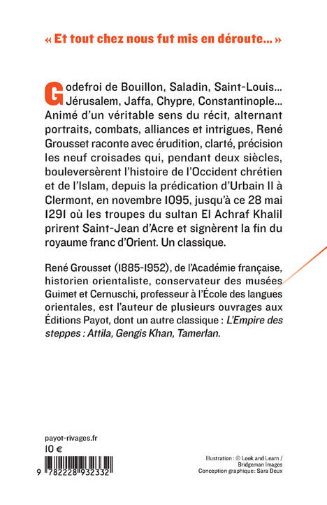 « Véritable livre de référence sur l'histoire des croisades, René Grousset, reconnu comme l'un des plus grands historiens de l'Orient, synthétise avec brio plus de deux siècles de guerre entre l'Occident chrétien et l'islam. » La grande histoire du Moyen−Age