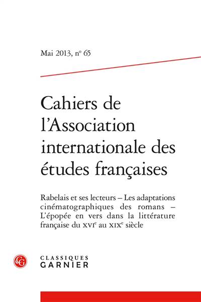 Actes de trois journées consacrées respectivement à la réception de Rabelais à travers le monde, aux adaptations cinématographiques de romans français (Les liaisons dangereuses, Hôtel du Nord, Thérèse Raquin, Les trois mousquetaires, etc.) et à l'épopée française en vers (Le voyage de Venise, Alaric ou Rome vaincue, poème héroïque, entre autres).