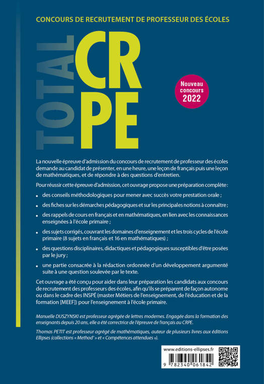 La collection« Total CRPE » propose des ouvrages tout-en-un pour se préparer aux différentes épreuves du nouveau concours CRPE, avec ici :