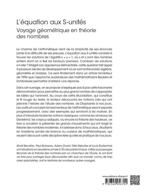 Au cours de l’élucidation de la démonstration, qui constitue le fil rouge du texte, le lecteur découvrira les notions clés qui ont jalonné l’histoire de l’étude des nombres, de Diophante à nos jours. Ce livre n’a pas vocation à être un cours d’arithmétique exhaustif, mais cherche plutôt à permettre au plus grand nombre, étudiants en troisième année de licence ou curieux de mathématiques, de comprendre en profondeur un article de recherche dans cette discipline. Il est accompagné de nombreux exemples et illustrations.