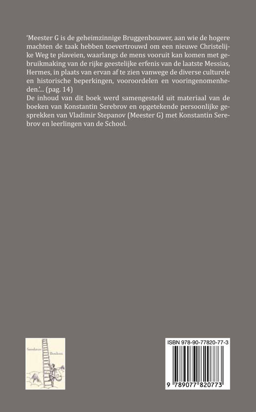 ‘Meester G is de geheimzinnige Bruggenbouwer, aan wie de hogere machten de taak hebben toevertrouwd om een nieuwe Christelijke Weg te plaveien, waarlangs de mens vooruit kan komen met gebruikmaking van de rijke geestelijke erfenis van de laatste Messias, Hermes, in plaats van ervan af te zien vanwege de diverse culturele en historische beperkingen, vooroordelen en vooringenomenheden.’... (pag. 14) De inhoud van dit boek werd samengesteld uit materiaal van de boeken van Konstantin Serebrov en opgetekende persoonlijke gesprekken van Vladimir Stepanov (Meester G) met Konstantin Serebrov en leerlingen van de School.