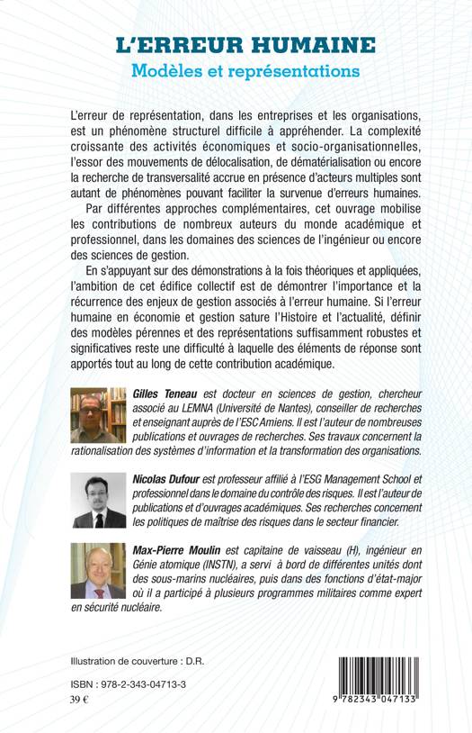 L'erreur de représentation, dans les entreprises et les organisations, est un phénomène structurel difficile à appréhender. La complexité croissante des activités économiques et socio-organisationnelles, l'essor des délocalisations, de la dématérialisation ou encore la recherche de transversalité accrue en présence d'acteurs multiples sont autant de phénomènes pouvant faciliter la survenue d'erreurs humaines. Ces contributions démontrent l'importance et la récurrence des enjeux de gestion qui y sont associés.