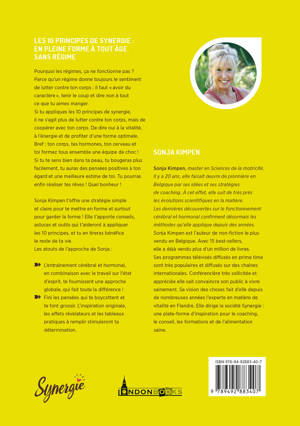 Depuis des décennies, Sonja Kimpen promeut une approche globale qui sort de l'ordinaire. La forme, la santé et l'énergie sont les outils les plus convoités pour donner forme à votre vie. Sonja ne propose pas l'énième régime miracle, elle a sélectionné le meilleur de son expérience pratique sur ce qui fonctionne vraiment! Grâce à un plan d'action clair, Les 10 principes de synergie En pleine forme à tout âge vous donne des outils pour combattre le surpoids et le manque d'énergie. Un corps fonctionne incontestablement de manière synergique, c'est-à-dire que l'ensemble est plus que la somme des parties. Bien plus!Kick-off en Wallonie: les 35 annnées de recherches, connaissances et expérience de Sonja Kimpen résumés dans un nouveau livre au beau graphisme.