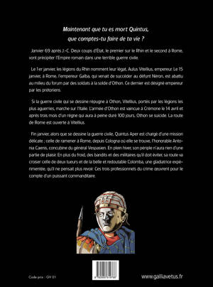 Janvier 69 après J.-C. Deux coups d'État, le premier sur le Rhin et le second à Rome, vont précipiter l'Empire romain dans une terrible guerre civile. Fin janvier, alors que se dessine la guerre civile, Quintus Aper est chargé d'une mission délicate , celle de ramener à Rome, depuis Cologna où elle se trouve, l'honorable Antonia Caenis, concubine du général Vespasien. En plein hiver, son périple n'aura rien d'une partie de plaisir. En plus du froid, des bandits et des militaires qu'il doit éviter, sa route va croiser celle de deux tueurs et de la belle et redoutable Colomba, une gladiatrice expérimentée, qu'il ne pensait plus revoir. Ces trois professionnels du crime oeuvrent pour le compte d'un puissant commanditaire.