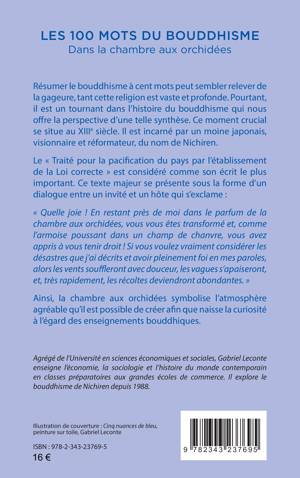Résumer le bouddhisme à cent mots peut sembler relever de la gageure, tant cette religion est vaste et profonde. Pourtant, il est un tournant dans l’histoire du bouddhisme qui nous offre la perspective d’une telle synthèse. Ce moment crucial se situe au XIIIe siècle. Il est incarné par un moine japonais, visionnaire et réformateur, du nom de Nichiren. Le « Traité pour la pacification du pays par l’établissement de la Loi correcte » est considéré comme son écrit le plus important. Ce texte majeur se présente sous la forme d’un dialogue entre un invité et un hôte qui s’exclame : « Quelle joie ! En restant près de moi dans le parfum de la chambre aux orchidées, vous vous êtes transformé et, comme l’armoise poussant dans un champ de chanvre, vous avez appris à vous tenir droit ! Si vous voulez vraiment considérer les désastres que j’ai décrits et avoir pleinement foi en mes paroles, alors les vents souffleront avec douceur, les vagues s’apaiseront, et, très rapidement, les récoltes deviendront abondantes. » Ainsi, la chambre aux orchidées symbolise l’atmosphère agréable qu’il est possible de créer afin que naisse la curiosité à l’égard des enseignements bouddhiques.