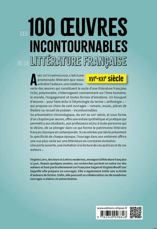 Sa présentation chronologique, du XVIe au XXIe siècle, et sous forme d’un chapitre par œuvre, offre une approche synthétique et pratique qui permettra aux étudiants, aux professeurs et/ou à toute personne désireuse de se plonger dans ce qui forme le patrimoine littéraire français classique et contemporain. Si ces entrées par siècle présentent la spécificité de chaque époque, l’ouvrage dans son entièreté offrira une vue plus vaste sur une littérature en constante évolution.