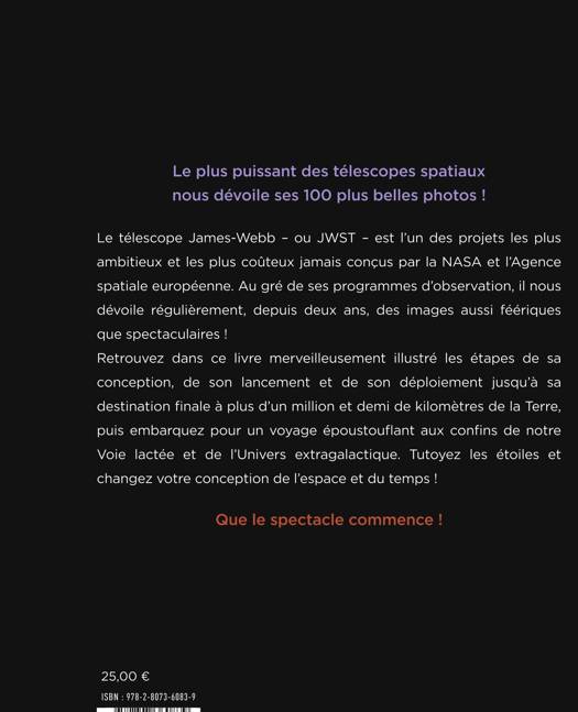 Retrouvez dans ce livre merveilleusement illustré les étapes de sa conception, de son lancement et de son déploiement jusqu’à sa destination finale à plus d’un million et demi de kilomètres de la Terre, puis embarquez pour un voyage époustouflant aux confins de notre Voie lactée et de l’Univers extragalactique. Tutoyez les étoiles et changez votre conception de l’espace et du temps !