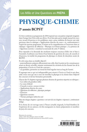 Il regroupe tout ce qui est indispensable pour réussir à l’écrit et à l’oral et sera donc utile à tous ceux qui ont à cœur de travailler la physiquedans l’objectif des concours et de leur formation personnelle. Chacun des chapitres regroupe plusieurs dizaines de questions réparties en rubriques :
