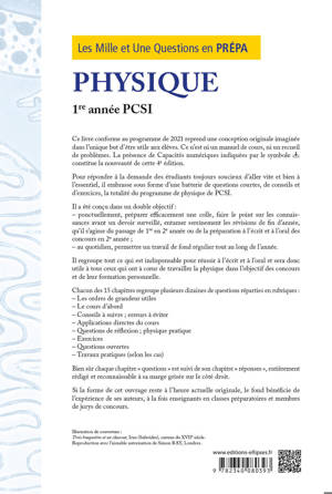 Il regroupe tout ce qui est indispensable pour réussir à l’écrit et à l’oral et sera donc utile à tous ceux qui ont à cœur de travailler la physique dans l’objectif des concours et de leur formation personnelle. Chacun des chapitres regroupe plusieurs dizaines de questions réparties en rubriques :