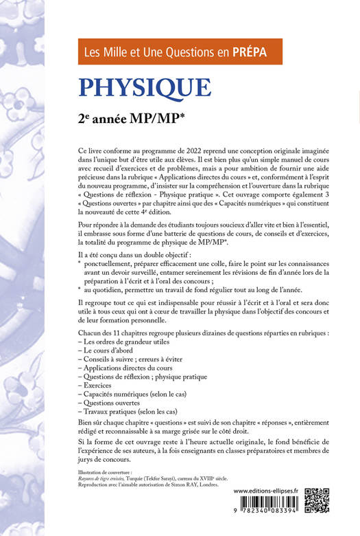 Il regroupe tout ce qui est indispensable pour réussir à l’écrit et à l’oral et sera donc utile à tous ceux qui ont à cœur de travailler la physique dans l’objectif des concours et de leur formation personnelle. Chacun des chapitres regroupe plusieurs dizaines de questions réparties en rubriques :
