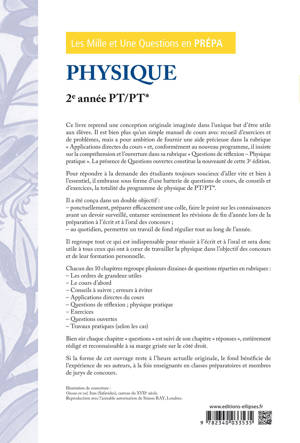 Pour répondre à la demande des étudiants toujours soucieux d’aller vite et bien à l’essentiel, ce livre embrasse sous forme d’une batterie de questions courtes, de conseils et d’exercices, la totalité du programme dephysique de PT/PT*.