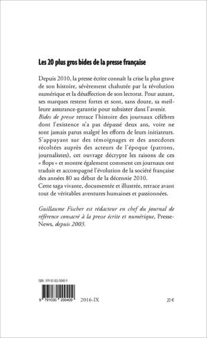 Depuis 2010, la presse écrite connaît la crise la plus grave de son histoire, sévèrement chahutée par la révolution numérique et la désaffection de son lectorat. Pour autant, ses marques restent fortes et sont, sans doute, sa meilleure assurance-garantie pour subsister dans l'avenir. Bides de presse retrace l'histoire des journaux célèbres dont l'existence n'a pas dépassé deux ans, voire ne sont jamais parus malgré les efforts de leurs initiateurs. S'appuyant sur des témoignages et des anecdotes récoltées auprès des acteurs de l'époque (patrons, journalistes), cet ouvrage décrypte les raisons de ces « flops » et montre également comment ces journaux ont traduit et accompagné l'évolution de la société française des années 80 au début de la décennie 2010.