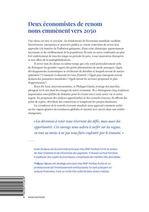 Koen De Leus, macroéconomiste, et Philippe Gijsels, stratège des marchés, plongent ici le nez dans les rouages de notre économie. Ils y distinguent cinq tendances importantes susceptibles de dominer pour les trente ans à venir notre vie et notre argent. En proposant des analyses approfondies et des conseils concrets, ils offrent des point de repère, dévoilent des connexions et tempèrent les propos alarmistes.