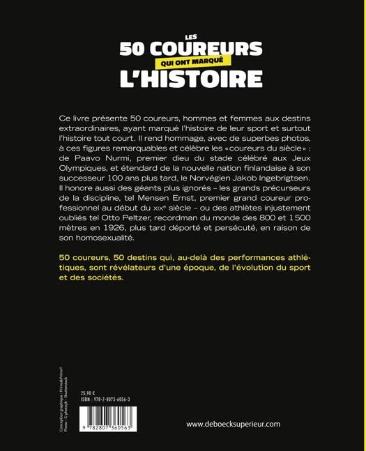 Les 50 athlètes d’exception présentés dans cet ouvrage ont tous mérité le qualificatif “C’est le coureur du siècle !” à l’époque de leurs exploits. Néanmoins, ce ne sont pas uniquement leurs performances et leurs exceptionnelles foulées qui les mettent à l’honneur dans ce livre.