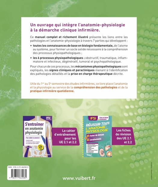 Utile du 1er au 5e semestre des études infirmières, ce livre place l’anatomie et la physiologie au service de la compréhension des pathologies et de la pratique infirmière quotidienne.