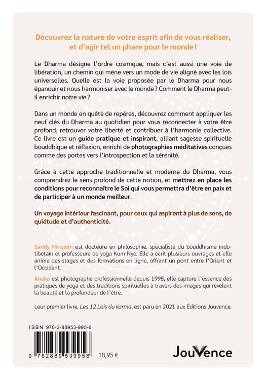 Dans un monde en quête de repères, découvrez comment appliquer les neuf clés du Dharma au quotidien pour vous reconnecter à votre être profond, retrouver votre liberté et contribuer à l’harmonie collective. Ce livre est un guide pratique et inspirant, alliant sagesse spirituelle bouddhique et réflexion, enrichi de photographies méditatives conçues comme des portes vers l’introspection et la sérénité.