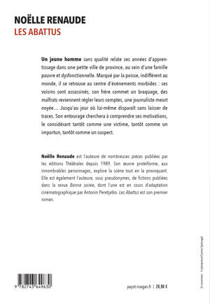 Noëlle Renaude est l'auteure de nombreuses pièces publiées par les éditions Théâtrales depuis 1989. Son oeuvre protéiforme, aux innombrables personnages, explorent la scène tout en la provoquant. Elle est également l'auteure, sous pseudonymes, de fictions publiées dans la revue «Bonne soirée», dont l'une est en cours d'adaptation cinématographique par Antonin Peretjatko.« Les Abattus» est son premier roman.