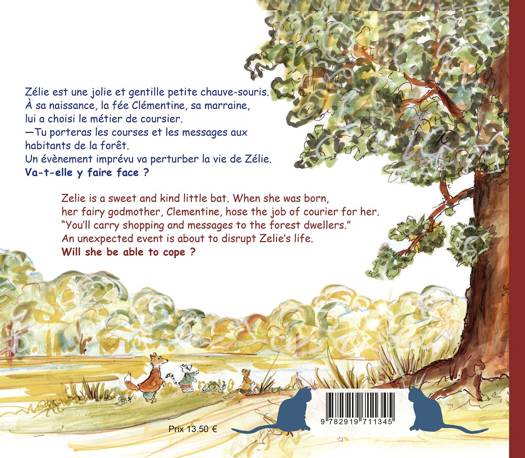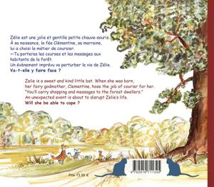 4e de couverture : Zélie est une jolie et gentille petite chauvesouris. À sa naissance, la fée Clémentine, sa marraine, lui a choisi le métier de coursier. —Tu porteras les courses et les messages aux habitants de la forêt. Un évènement imprévu va perturber la vie de Zélie. Va-t-elle y faire face ?