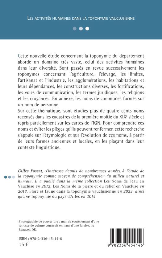 Cette nouvelle étude concernant la toponymie du département aborde un domaine très vaste, celui des activités humaines dans leur diversité. Sont passés en revue successivement les toponymes concernant l’agriculture, l’élevage, les limites, l’artisanat et l’industrie, les agglomérations, les habitations et leurs dépendances, les constructions diverses, les fortifications, les voies de communication, les termes juridiques, les religions et les croyances. En annexe, les noms de communes formés sur un nom de personne. Sur cette thématique, sont étudiés plus de quatre cents noms recensés dans les cadastres de la première moitié du XIXe siècle et repris partiellement sur les cartes de l’IGN. Pour comprendre ces noms et éviter les pièges qu'ils peuvent renfermer, cette recherche s'appuie sur l'étymologie et sur l'évolution de ces noms, à partir de leurs formes anciennes et locales, en les plaçant dans leur contexte linguistique.
