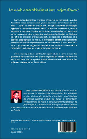 Après un examen critique des principaux modèles et concepts appliqués à l'étude des représentations d'avenir des adolescents, ce livre s'attache à mettre en lumière les variables contextuelles qui participent de la construction des projets des adolescents burkinabè. Il s'inscrit dans une perspective sociale utile en vue de faire évoluer les politiques d'orientation au Burkina Faso.