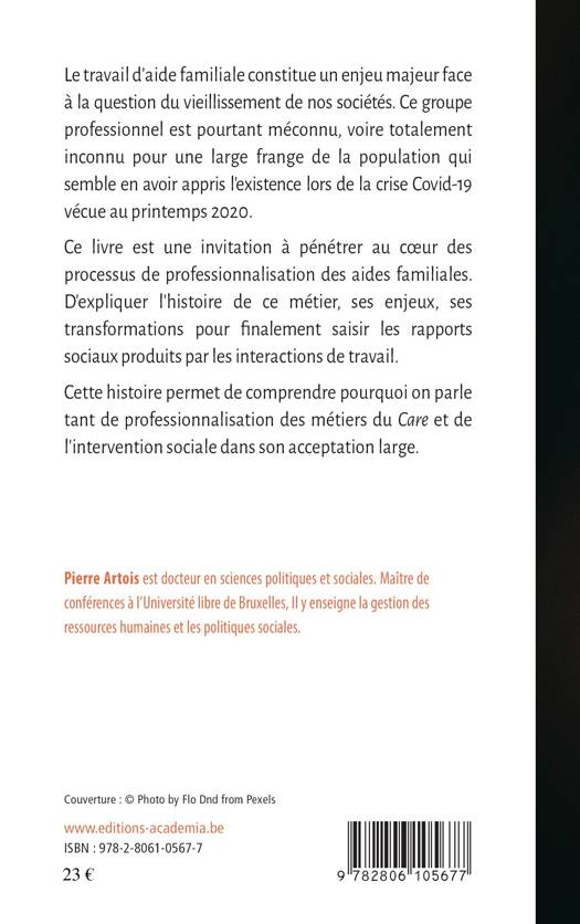 Le travail d'aide familiale constitue un enjeu majeur face à la question du vieillissement de nos sociétés. Ce groupe professionnel est pourtant méconnu voire totalement inconnu pour une large frange de la population qui semble en avoir appris l'existence lors de la crise Covid-19 vécue au printemps 2020. Ce livre est une invitation au coeur des processus de professionnalisation des aides familiales.