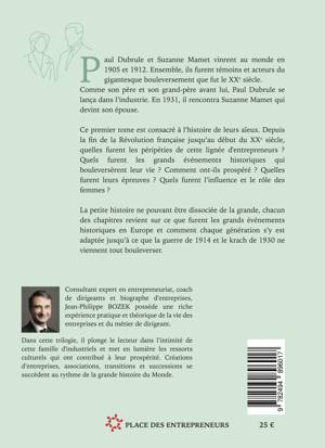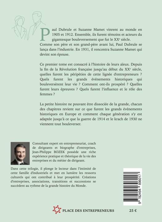 Ce premier tome est consacré à l’histoire de leurs aïeux. Depuis la fin de la révolution française jusqu’au début du XXème siècle, quelles furent les péripéties de cette lignée d’entrepreneurs ? Quels furent les grands événements historiques qui bouleversèrent leur vie ? Comment ont-ils prospéré ? Quelles furent leurs épreuves ? Quelle furent l’influence et le rôle des femmes ?