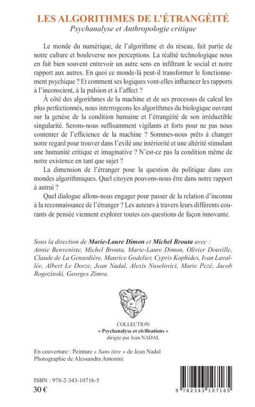 Le monde du numérique, de l'algorithme et du réseau, fait partie de notre culture et bouleverse nos perceptions. Transformera-t-il notre propre rapport à autrui et à l'étranger ? Réussirons-nous à donner toute son ampleur aux algorithmes du biologique ouvrant sur la genèse de la condition humaine et sur l'étrangéité, son irréductible singularité? Dans ce monde des algorithmes, le politique peut-il encore poser la question de l'étranger? Les auteurs viennent explorer un grand nombre de ces questions liant de façon innovante psychanalyse et anthropologie.
