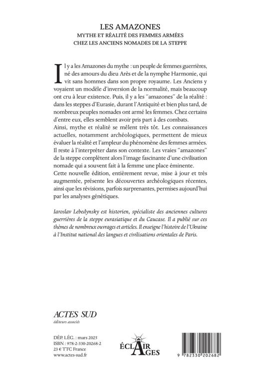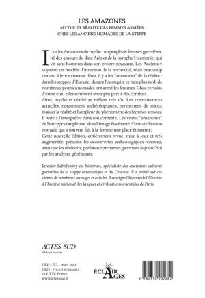Il y a les Amazones du mythe : un peuple de femmes guerrières, né des amours du dieu Arès et de la nymphe Harmonie, qui vit sans hommes dans son propre royaume. Les Anciens y voyaient un modèle d'inversion de la normalité, mais beaucoup ont cru à leur existence. Puis, il y a les "amazones" de la réalité : dans les steppes d'Eurasie, durant l'Antiquité et bien plus tard, de nombreux peuples nomades ont armé les femmes. Chez certains d'entre eux, elles semblent avoir pris part à des combats. Ainsi, mythe et réalité se mêlent très tôt. Les connaissances actuelles, notamment archéologiques, permettent de mieux évaluer la réalité et l'ampleur du phénomène des femmes armées. Il reste à l'interpréter dans son contexte. Les vraies "amazones" de la steppe complètent alors l'image fascinante d'une civilisation nomade qui a souvent fait à la femme une place éminente. Cette nouvelle édition, entièrement revue, mise à jour et très augmentée, présente les découvertes archéologiques récentes, ainsi que les révisions, parfois surprenantes, permises aujourd'hui par les analyses génétiques.