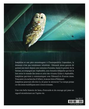 Joséphine et son père emménagent à Chanteperdrix. Cependant, la demeure n’est pas totalement inhabitée. Édouard, jeune garçon de quinze ans, mort depuis une centaine d’année hante le grenier de la bâtisse, accompagné par Asphodèle, une chouette télépathe qui fait le lien entre le monde des âmes et celui des vivants. Grâce à Asphodèle, Joséphine parvient à communiquer avec Édouard et d’autres âmes. Tous sont à la recherche d’Albert, le jeune frère d’Édouard. Joséphine pourrait-elle être la clé pour le retrouver ? Le temps presse, car des âmes sombres sont à leurs trousses.
