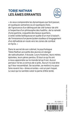 Dans le secret de son cabinet, le psychologue Tobie Nathan accueille des jeunes en danger de radicalisation. Il écoute. Leurs histoires, leurs mères éplorées, leurs pères perdus. Et tout ce qu’ils ont à nous apprendre sur le monde tel qu’il est. Aucun penseur ne les a connus de si près. Aucun n’a osé dire qu’il leur ressemblait. Se raconter, se mettre à nu pour faire revenir les « âmes errantes », est un pari risqué. Le seul qui lui semblait valoir la peine d’être tenté.