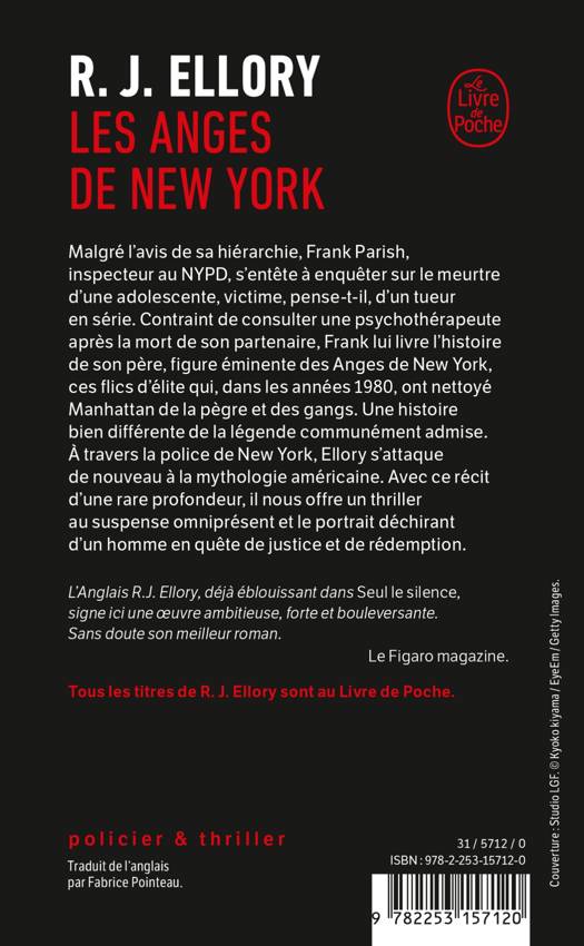 Malgré l’avis de sa hiérarchie, Frank Parish, inspecteur au NYPD, s'entête à enquêter sur le meurtre d'une adolescente, victime, pense-t-il, d’un tueur en série. Contraint de consulter une psychothérapeute après la mort de son partenaire, Frank va lui livrer l'histoire de son père, figure éminente des Anges de New York, ces flics d'élite qui, dans les années 1980, ont nettoyé Manhattan de la pègre et des gangs. Une histoire bien différente de la légende communément admise. À travers la police de New York, Ellory s'attaque de nouveau à la mythologie américaine. Avec ce récit d'une rare profondeur, il nous offre un thriller au suspense omniprésent et le portrait déchirant d'un homme en quête de justice et de rédemption.