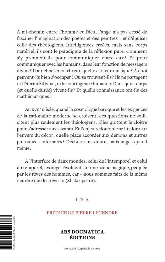 À mi-chemin entre l’homme et Dieu, l’ange n’a pas cessé de fasciner l’imagination des poètes et des peintres – et d’épuiser celle des théologiens. Intelligences créées, mais sans corps matériel, ils sont le paradigme de la réfl exion pure. Comment s’y prennent-ils pour communiquer entre eux? Et pour communiquer avec les humains, dans leur fonction de messagers divins? Pour chanter en chœur, quelle est leur musique? À quoi peuvent-ils bien s’occuper? Où se trouvent-ils? Ils ne partagent ni l’éternité divine, ni la contingence humaine. Dans quel temps (et quelle durée) vivent-ils? Et quelle connaissance ont-ils des mathématiques? Au xviie siècle, quand la cosmologie baroque et les exigences de la rationalité moderne se croisent, ces questions ne solli- citent plus seulement les théologiens. Elles quittent le cloître pour s’adresser aux savants. Et l’enjeu redoutable se lit alors sur l’envers du décor? Quelle place accorder aux démons et autres puissances infernales? Déchus sans doute, mais anges quand même. À l’interface de deux mondes, celui de l’intemporel et celui du temporel, les anges évoluent sur une scène magique, peuplée par les rêves des hommes, car « nous sommes faits de la même matière que les rêves » (Shakespeare).