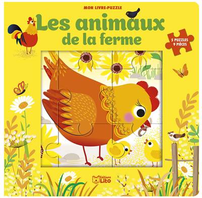 Découvre les animaux de la ferme tout en t'amusant avec ces 5 puzzles de 9 pièces chacun.
