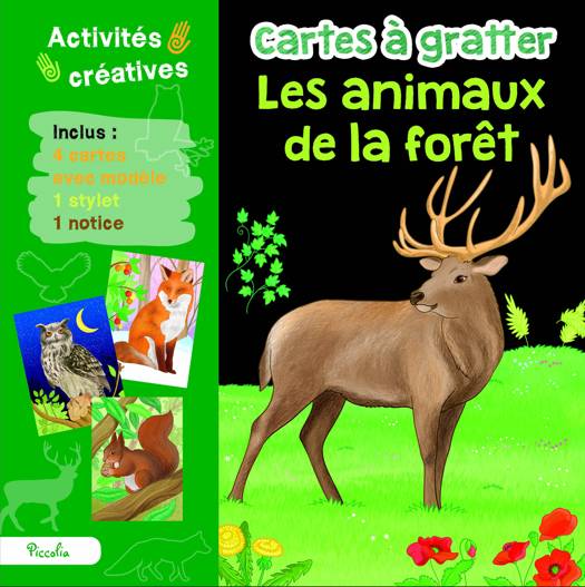 Une pochette de 4 cartes à gratter avec stylet et notice pas à pas sur le thème des animaux de la forêt.