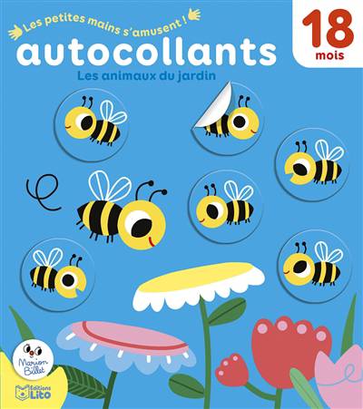 Des autocollants sur le thème des animaux du jardin. L'enfant doit les coller sur la bonne image en s'aidant de celui déjà placé : les abeilles parmi les fleurs, les escargots sur les salades, les grenouilles dans l'étang, entre autres.