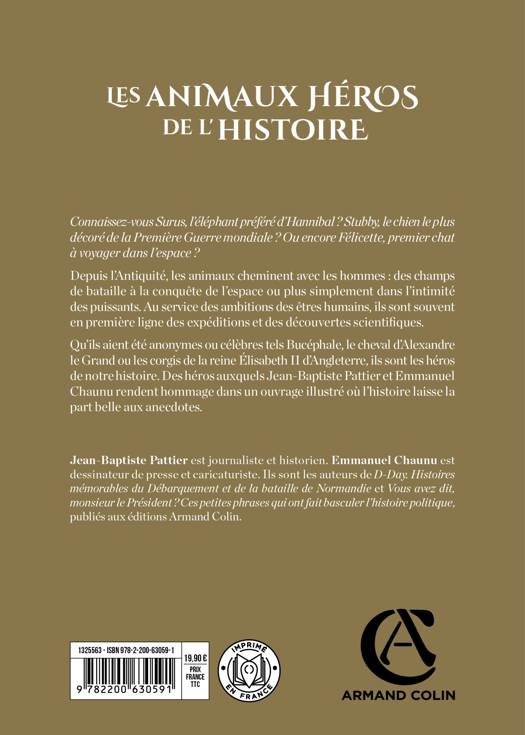 Plus souvent oubliés que décorés, les animaux sont aussi les héros de notre Histoire. Des héros auxquels Jean-Baptiste Pattier et Emmanuel Chaunu rendent hommage dans un ouvrage illustré où l'Histoire laisse la part belle aux anecdotes.