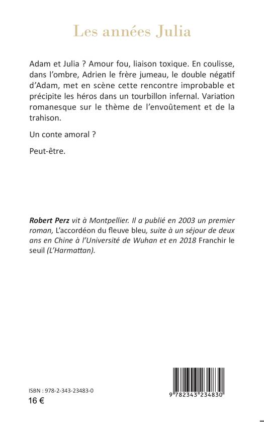 Adam et Julia ? Amour fou, liaison toxique. En coulisse, dans l'ombre, Adrien le frère jumeau, le double négatif d'Adam, met en scène cette rencontre improbable et précipite les héros dans un tourbillon infernal. Variation romanesque sur le thème de l'envoûtement et de la trahison. Un conte amoral ? Peut-être.