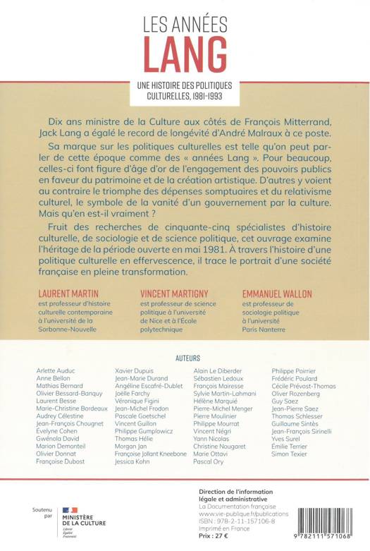 Parfois louangeurs parfois critiques, de tous les livres existant sur Jack Lang aucun ne propose une réflexion systématique sur les politiques culturellles mise en place à cette époque. Conçu sous la forme d’un dictionnaire avec ses 108 entrées alphabétiques réparties en trois parties. 60 éminents spécialistes ont participé à ce dictionnaire, cet ouvrage a l’ambition d’être la référence et d’offrir des clefs de compréhension de cette époque et de l’héritage considérable qu’elle nous a légué.